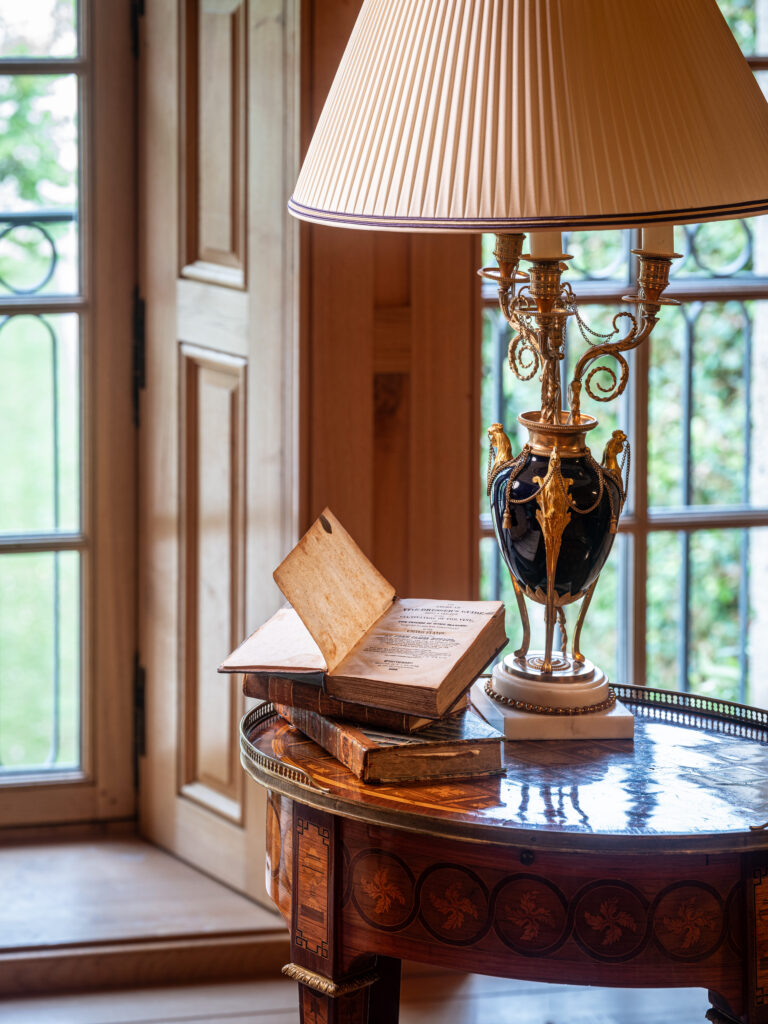 Cette bibliothèque vient compléter les remarquables collections d’œuvres d’art et d’antiquités assemblées dans les trois domaines vinicoles de la famille Dillon. Tous trois étant bâtis sur des terres viticoles depuis l’époque romaine, il est logique qu’y soient soigneusement conservés certains des premiers objets liés à la production et à la consommation du vin. À Haut-Brion, on trouve des reliques romaines, grecques et étrusques, dont des amphores, de la monnaie et toutes sortes de réceptacles pour boire. La collection d’oeuvres d’art, principalement du 18ème siècle, s’est enrichie pour trouver avec sa résidence parisienne et le restaurant Le Clarence un écrin à sa mesure.