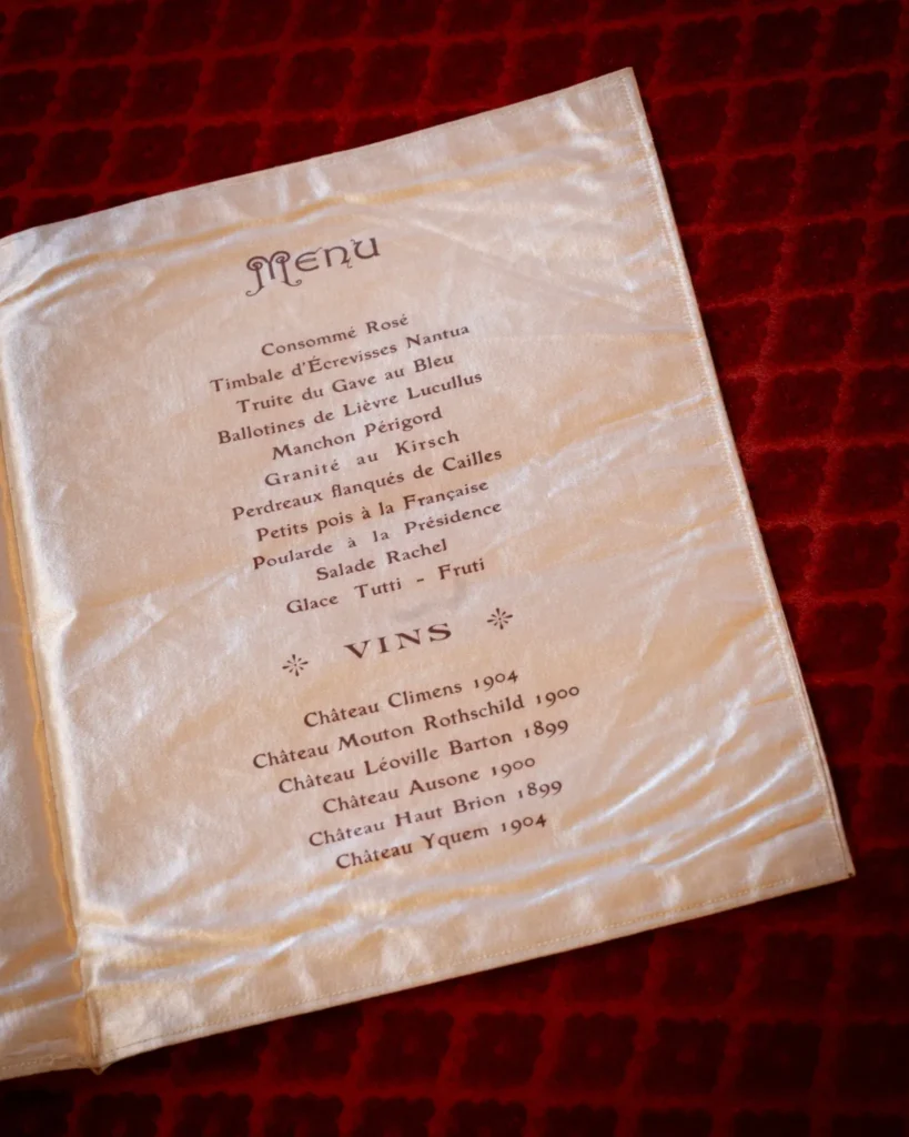 La majeure partie des menus conservés dans la collection témoigne de déjeuners et dîners prestigieux où les vins de Château Haut-Brion ont été servis, marquant ainsi de multiples événements où la gastronomie et l’œnologie se sont harmonieusement unies.